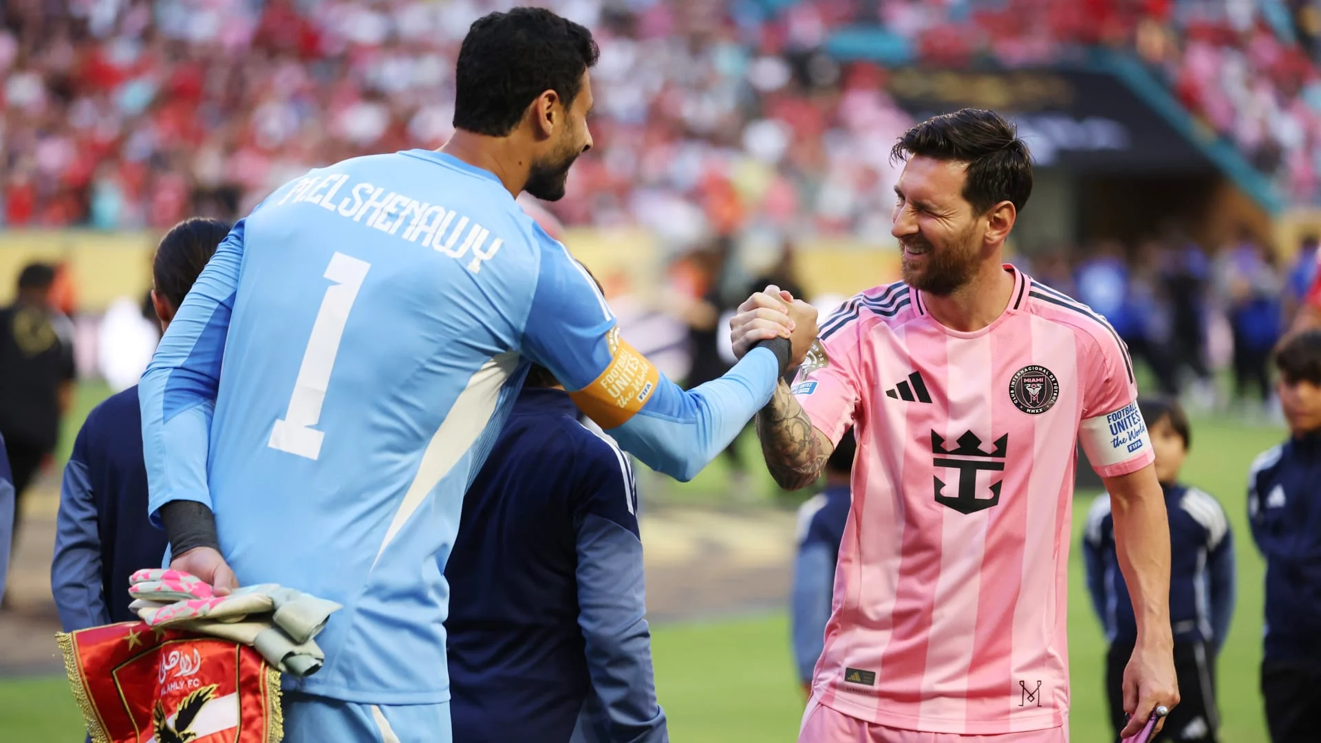عقب صافرة النهاية بالتعادل السلبي بين الفريقين في أول مباريات كأس العالم للأندية 2025، شوهد ميسي داخل المستطيل الأخضر وهو يتوجه نحو الشناوي قبل أن يعانقه.